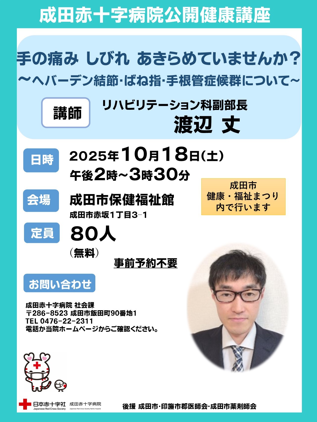 成田赤十字病院では、成田市や近隣にお住まいの方々を対象とした健康講座を定期的に開催しております。